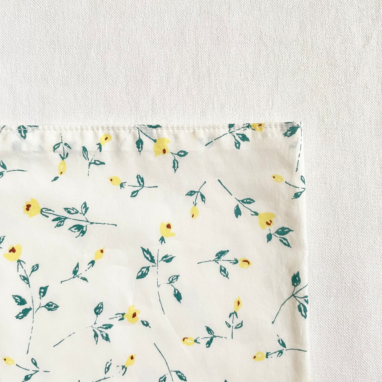 白地に繊細な黄色い花が描かれた、Demi。