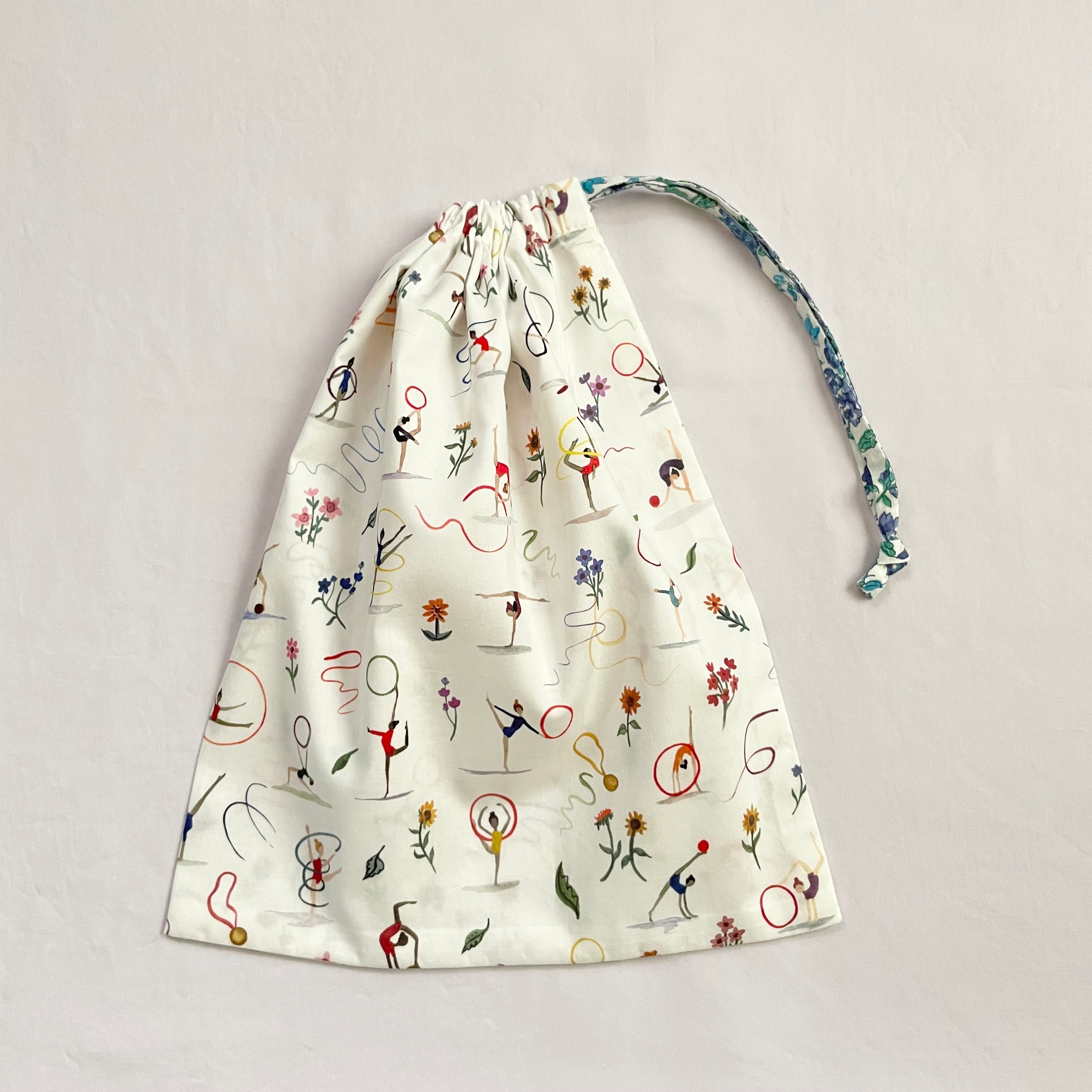 リバティプリント生地で作った巾着袋です。