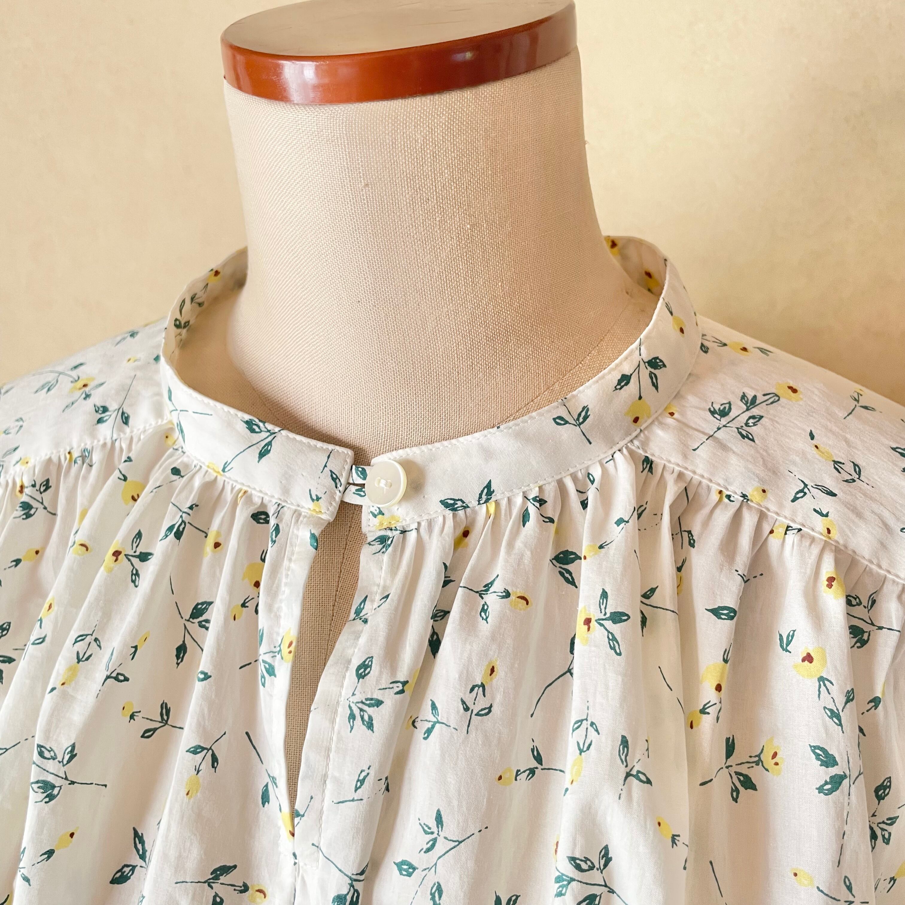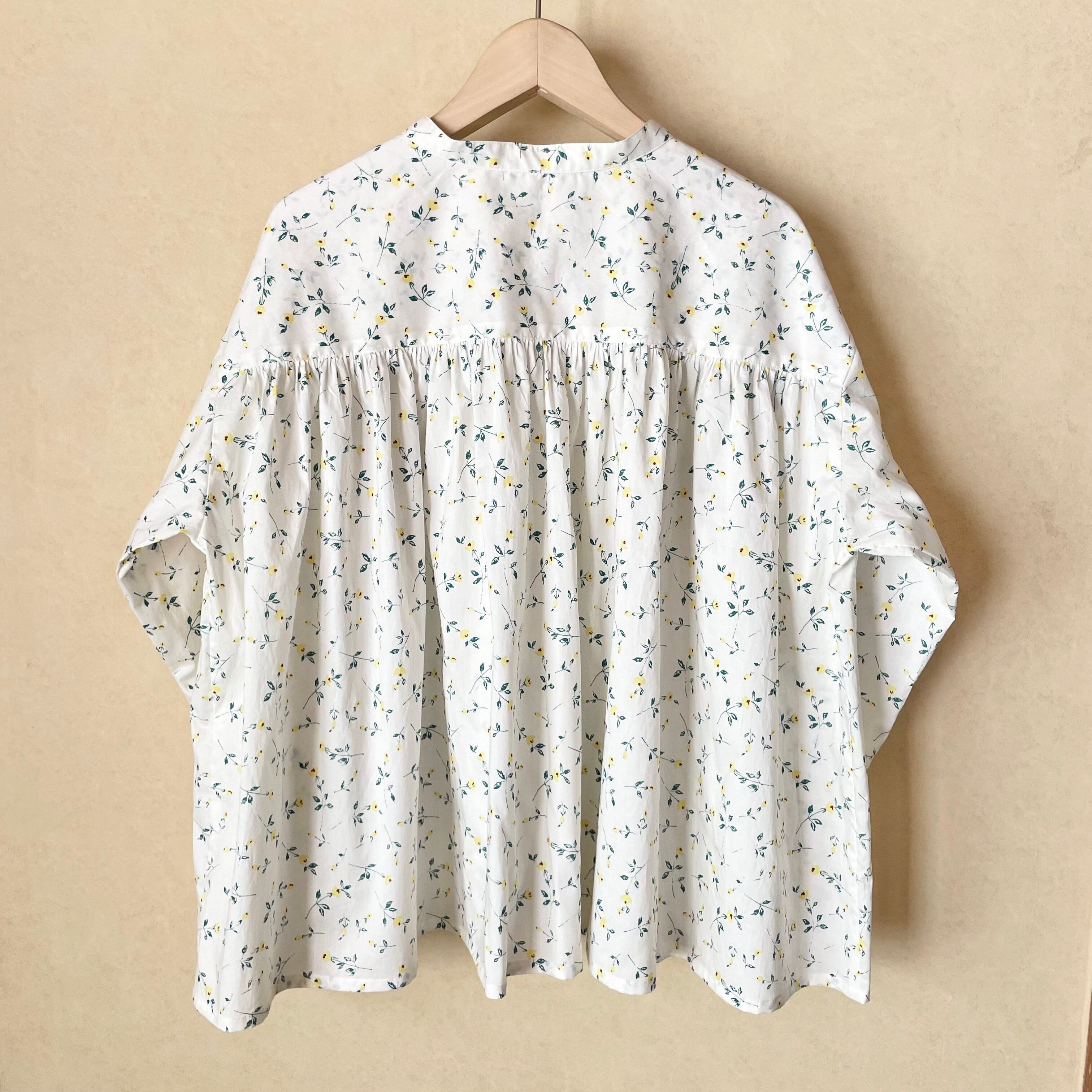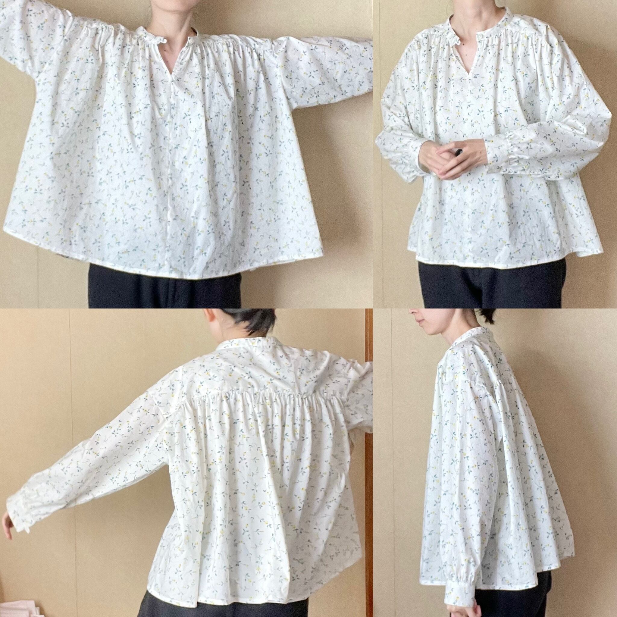 可愛らしい印象の柄で、ギャザーたっぷりのブラウスを仕立てました。