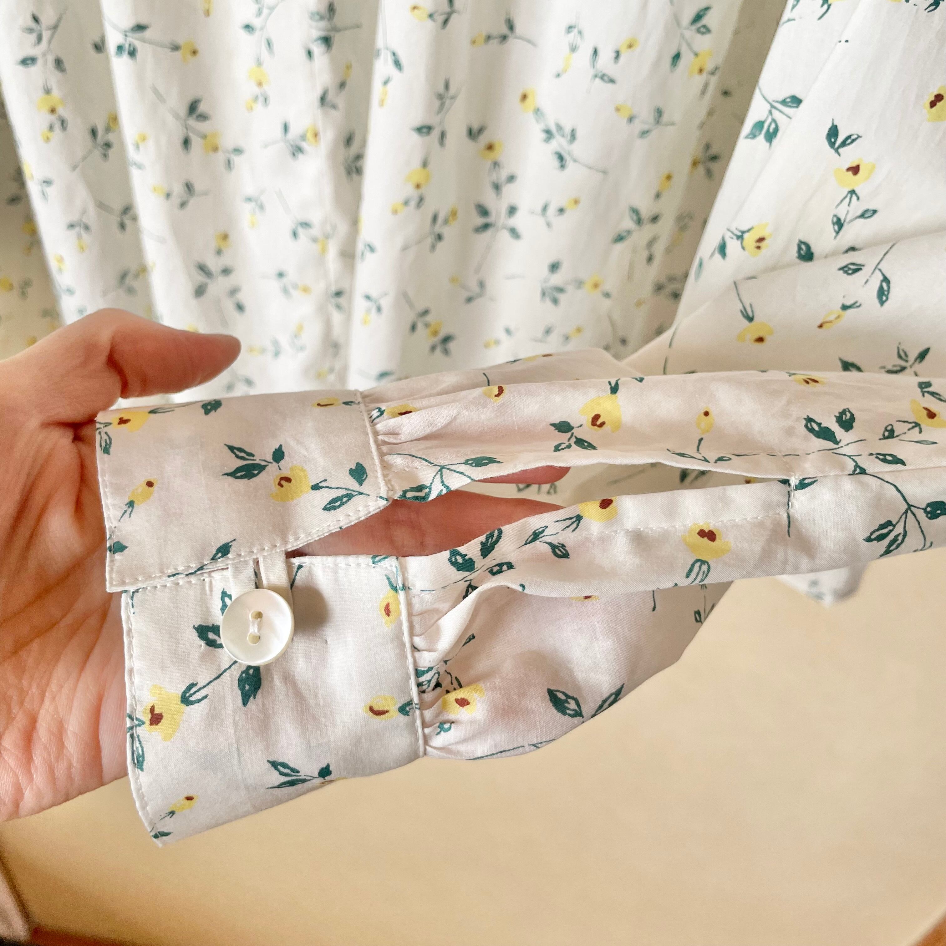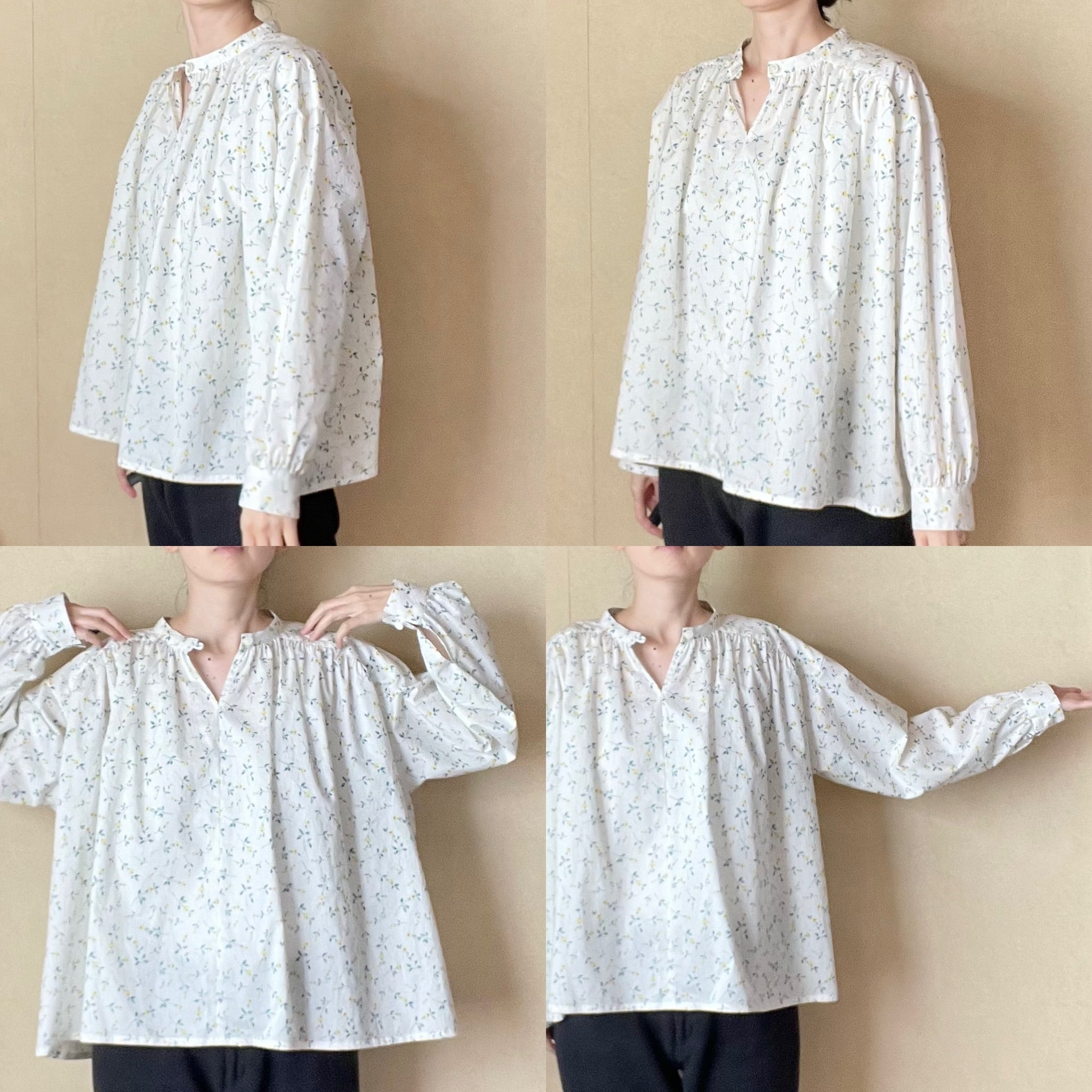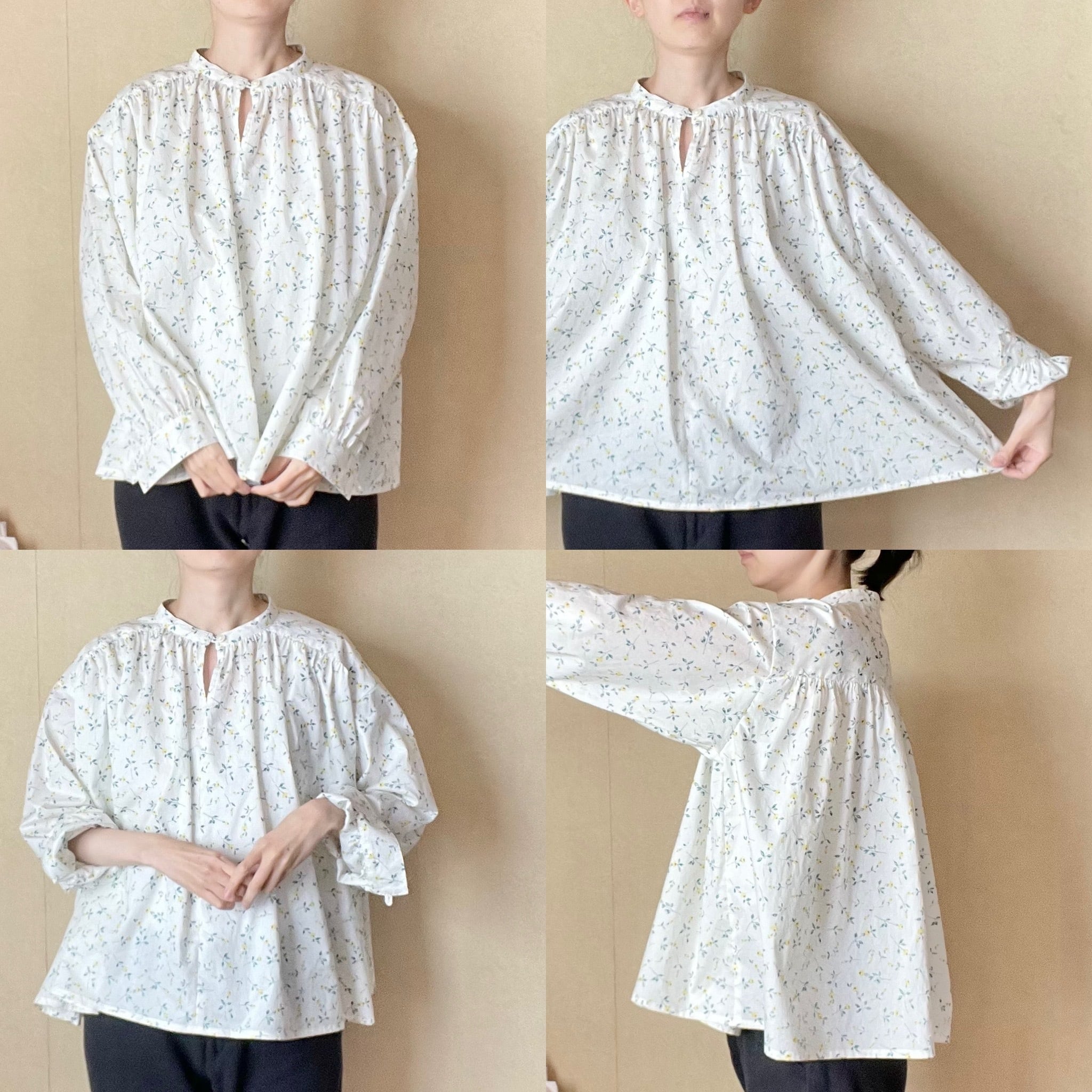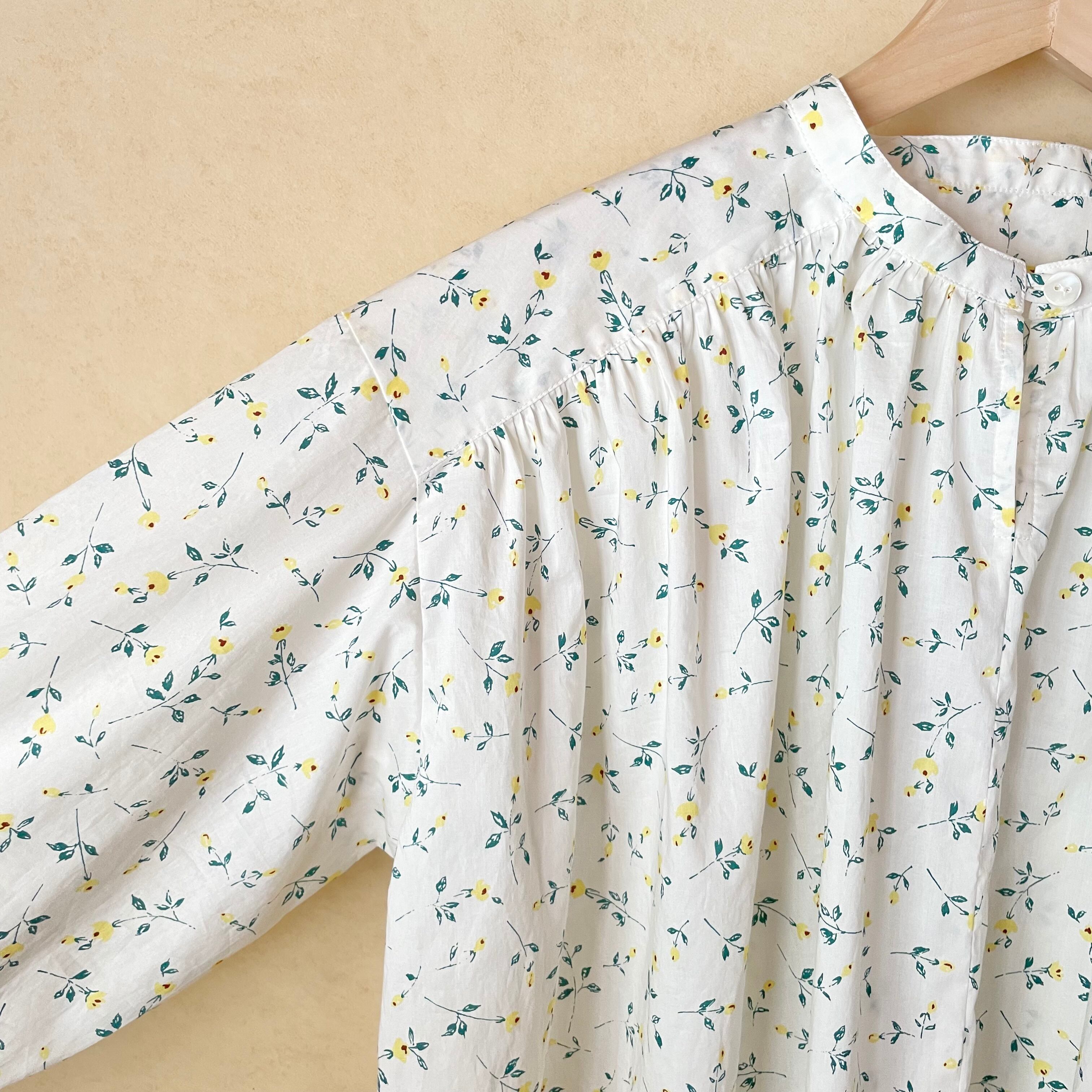 可愛らしい印象の柄で、ギャザーたっぷりのブラウスを仕立てました。