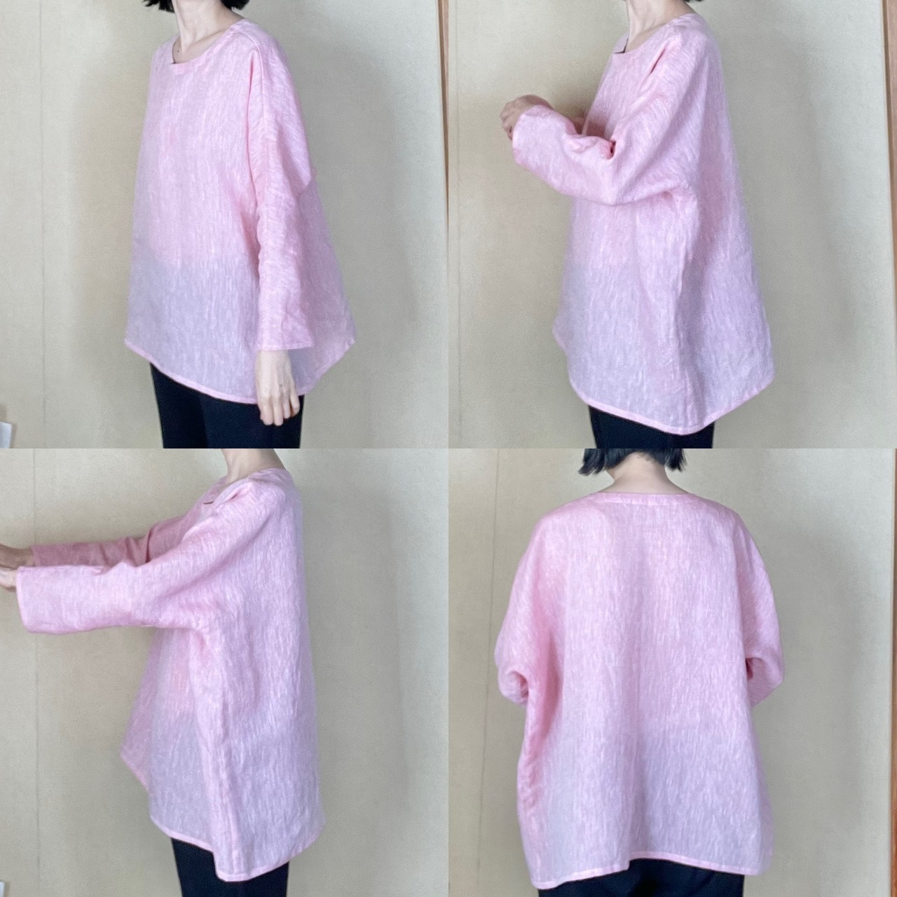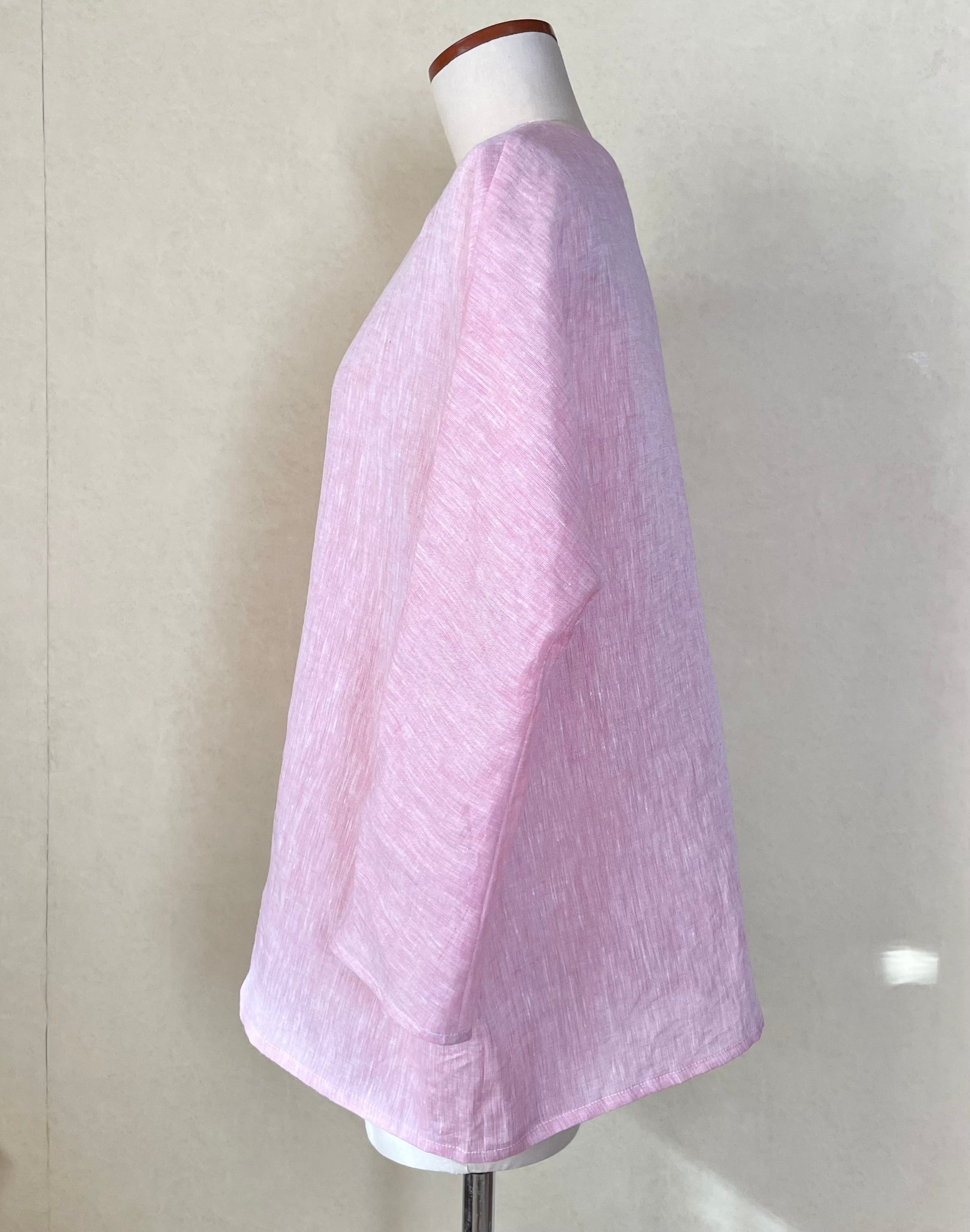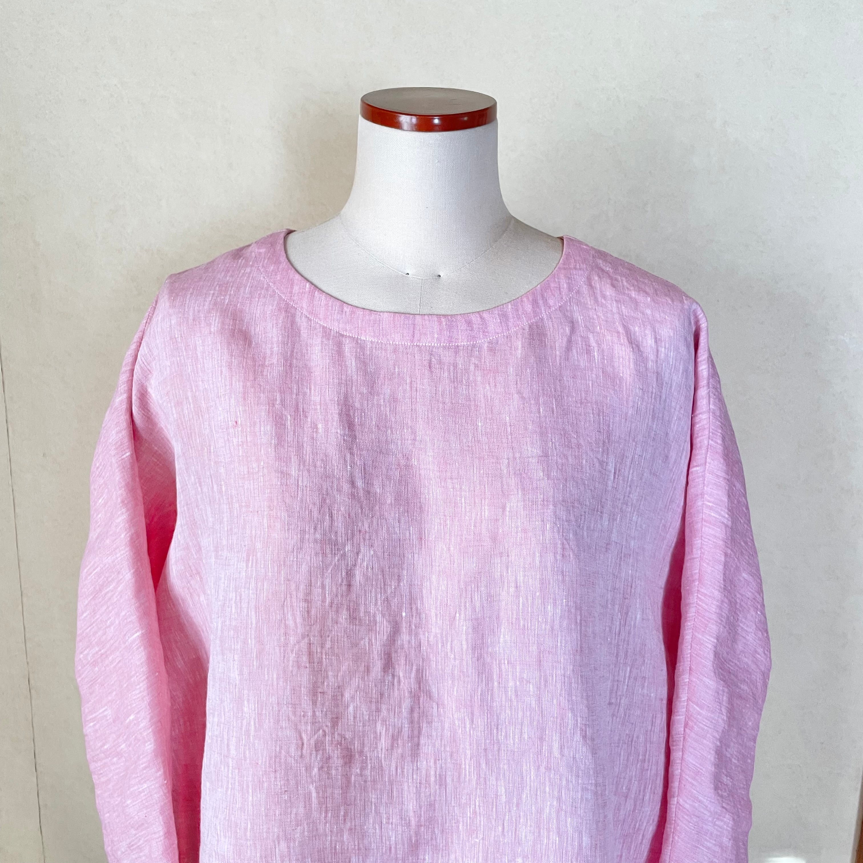 サラリとした、とても涼しいリネン生地でドルマンスリーブのプルオーバーに仕立てました。