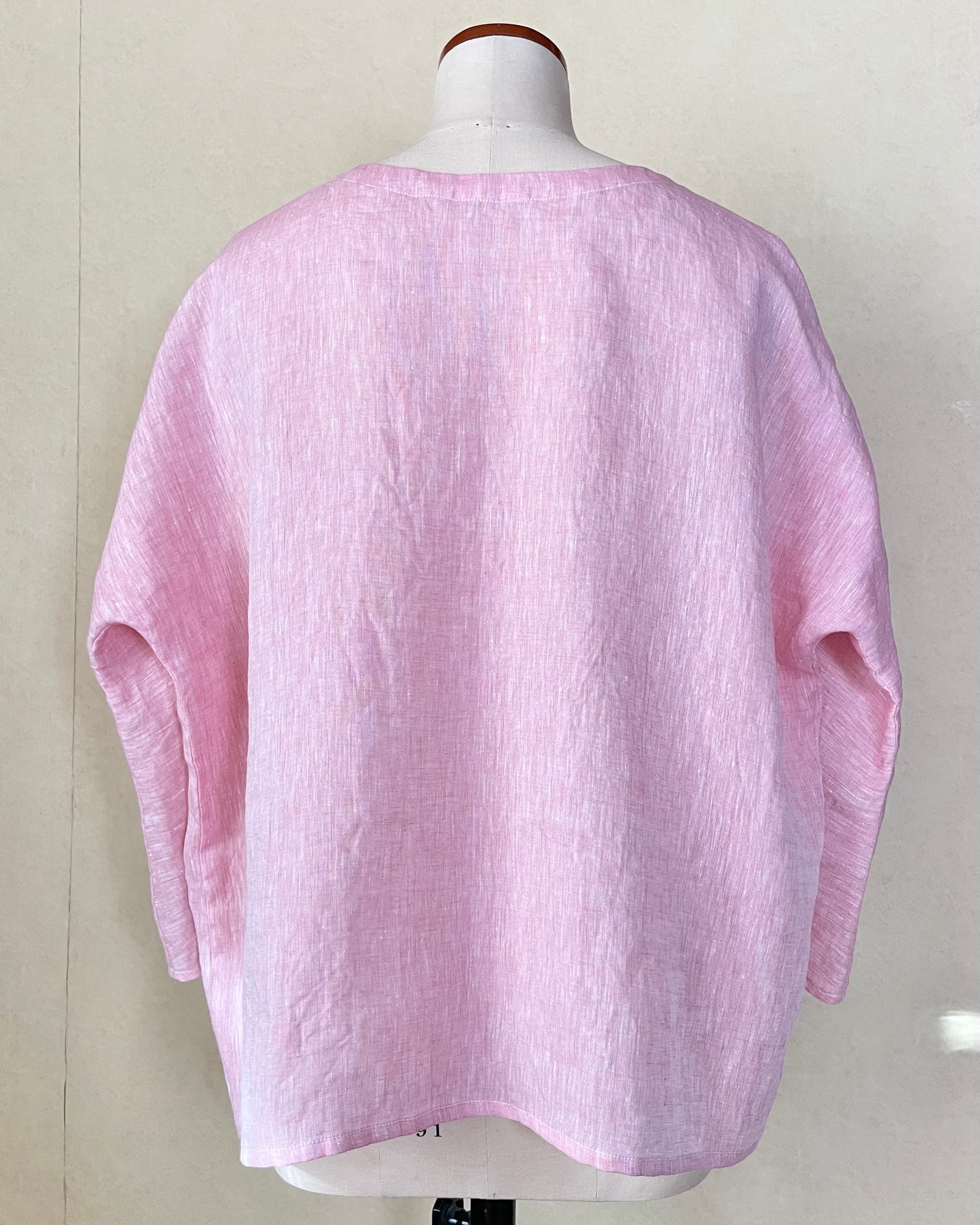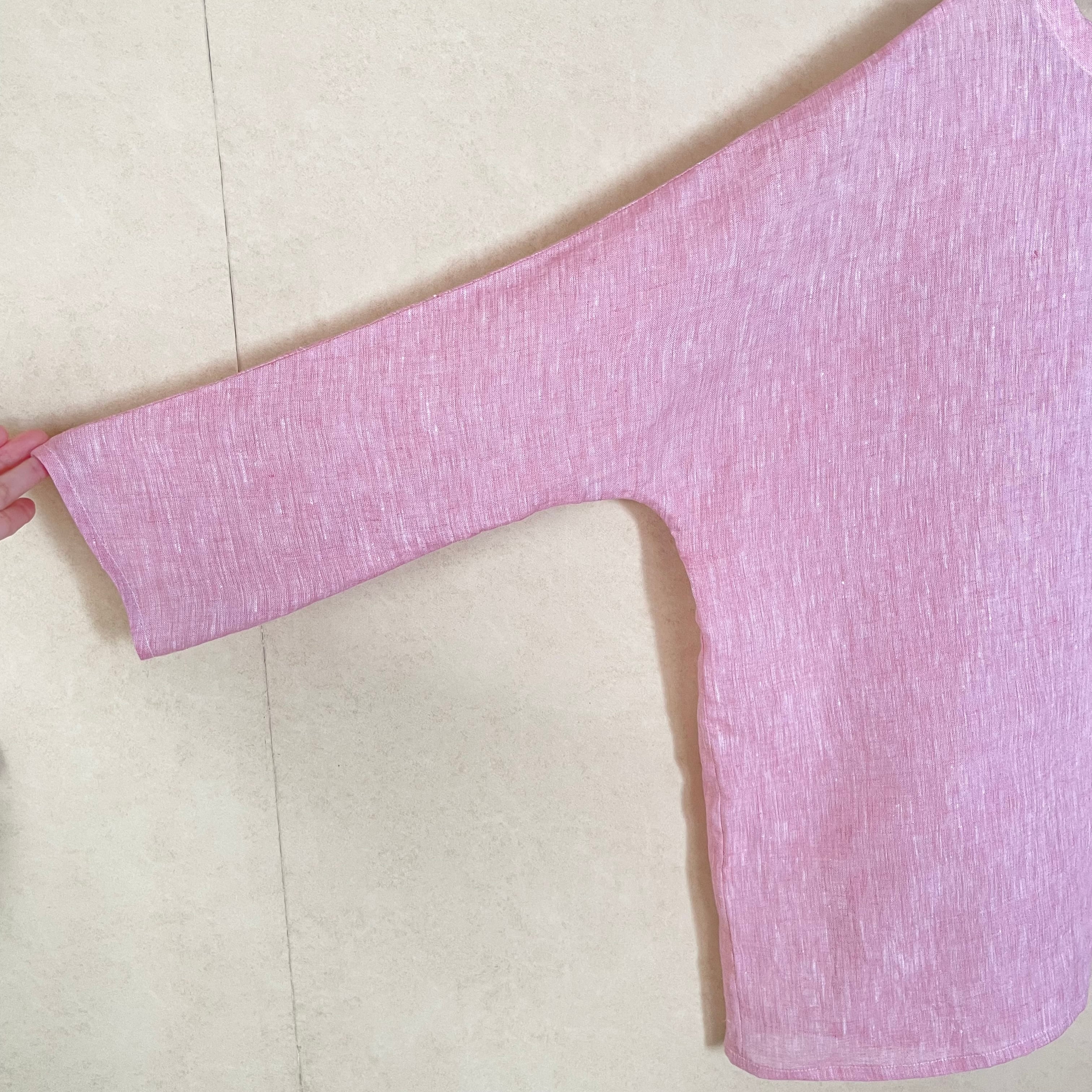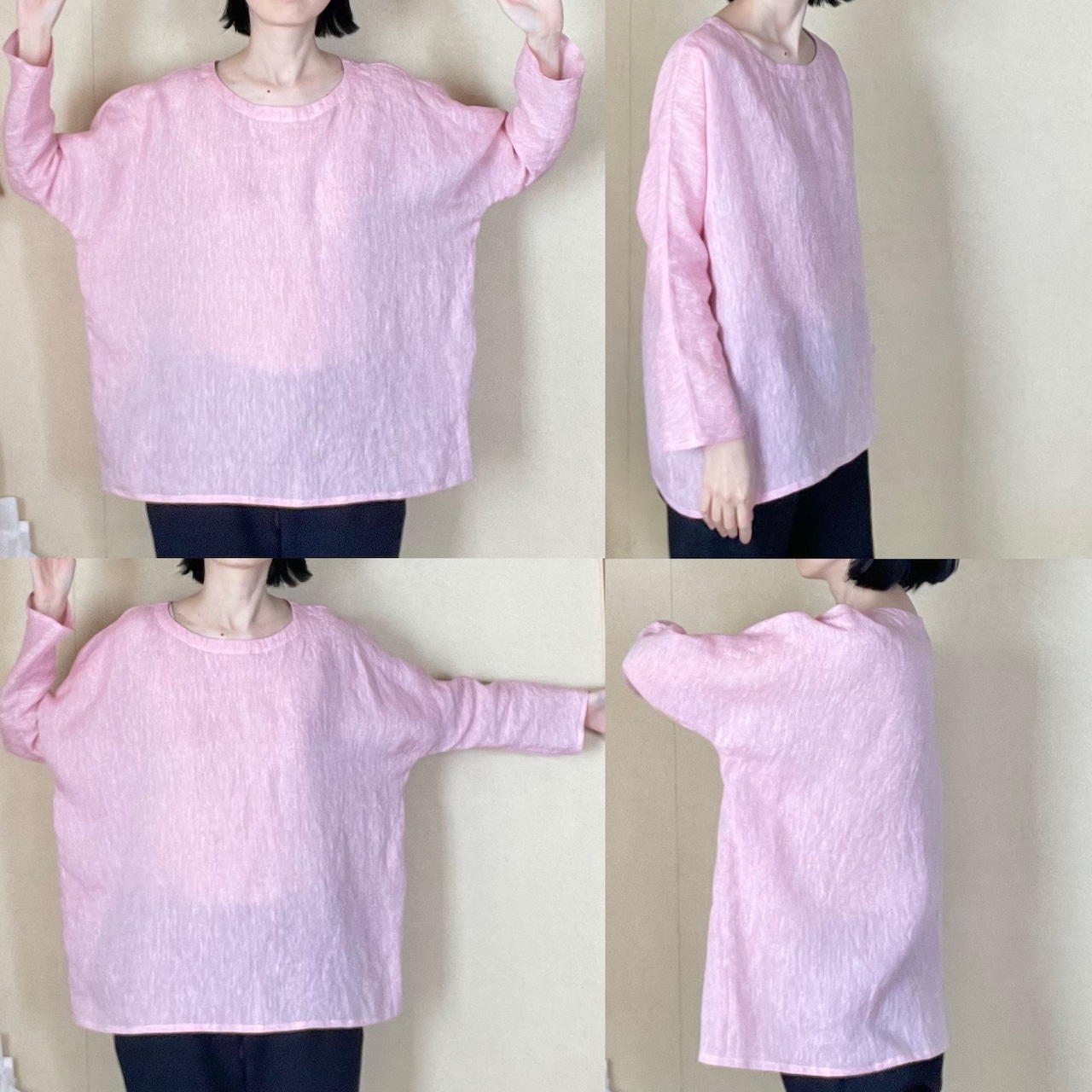サラリとした、とても涼しいリネン生地でドルマンスリーブのプルオーバーに仕立てました。