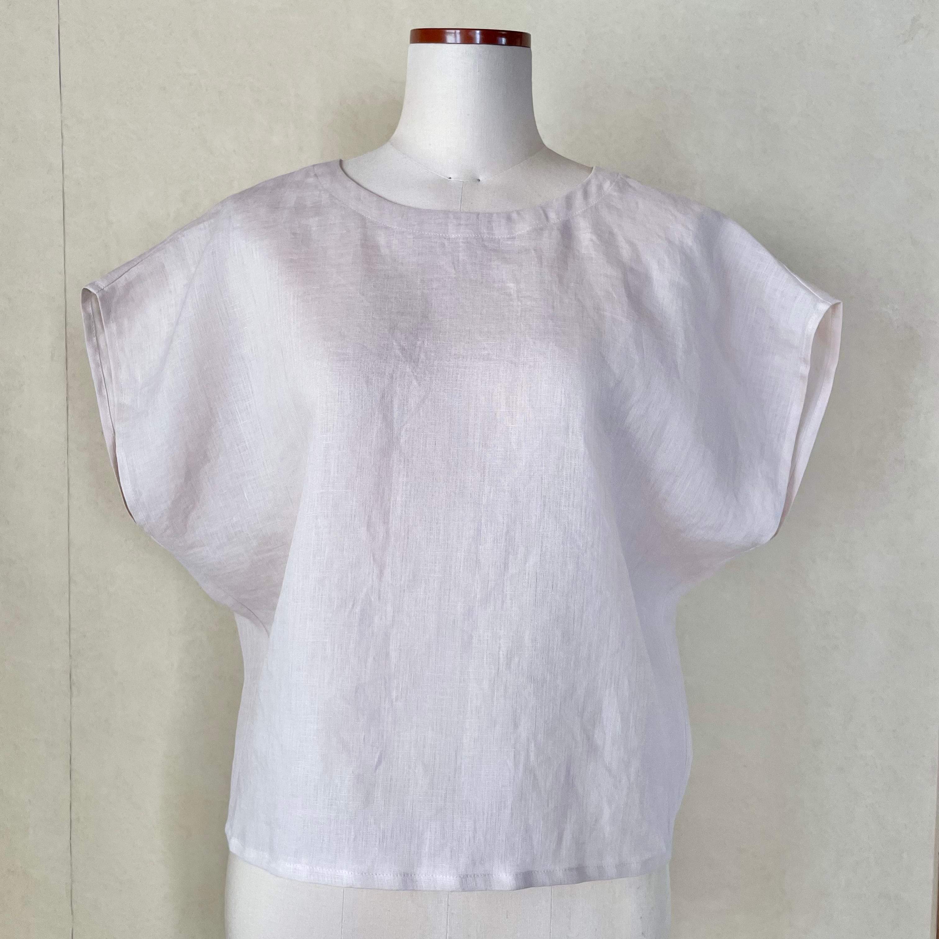 Lサイズ・フレンチスリーブ プルオーバー ベルギー製リネン 薄ピンク