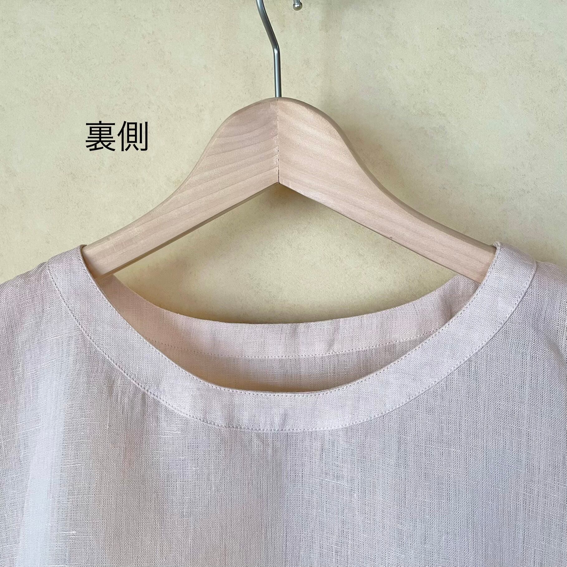 肩と脇下は袋縫い、襟ぐりの見返しもロックミシンではない仕立てにしました。