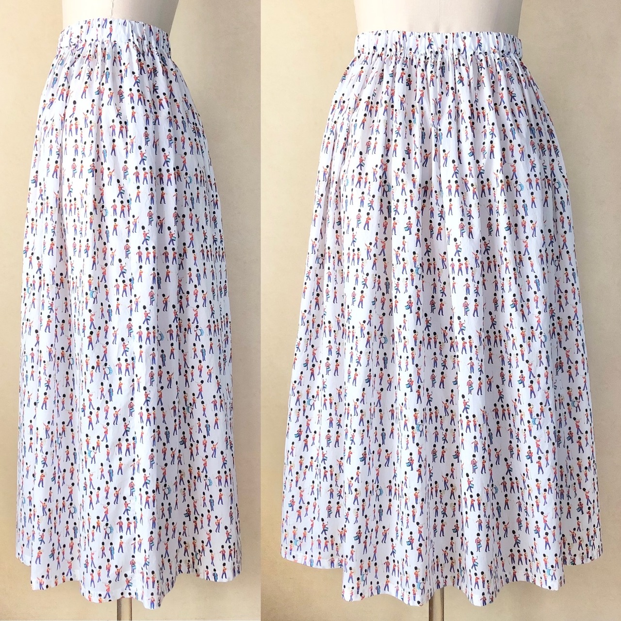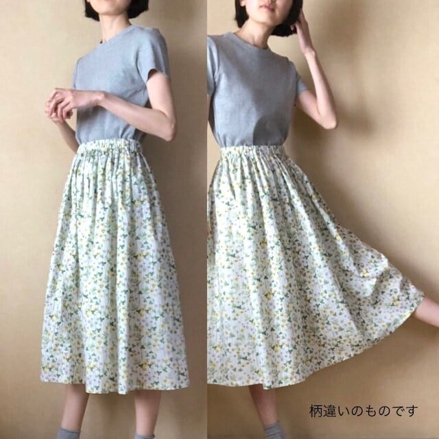 夏はTシャツと、冬はスウェットやセーターと合わせても。